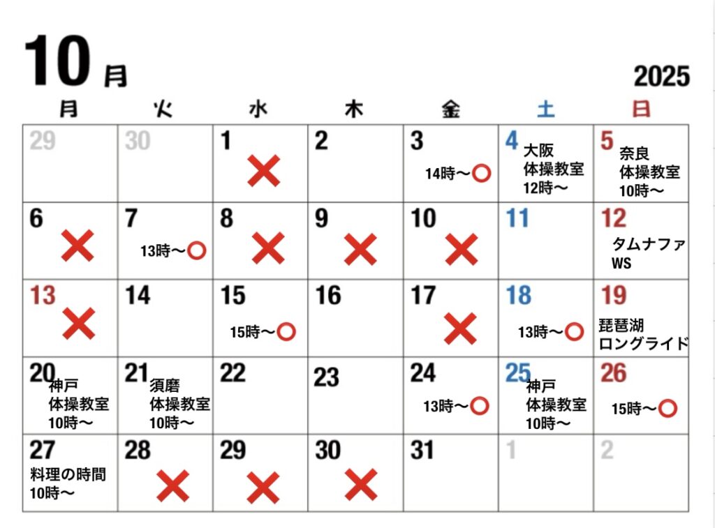 *変更は同月内でしたら14日前まで可能です。