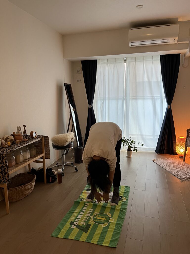 持ち物//動きやすい服装、ヨガマットかバスタオル、靴下